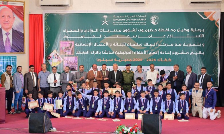 وتضمن الحفل، الذي حضره وكيل محافظة حضرموت الحكم سالم شرمان، تخرج الدفعة الثالثة لعدد 25 طفلًا، بعد أن تلقوا برنامج تأهيل شامل تضمن الدعم النفسي والاجتماعي، إلى جانب أنشطة رياضية وثقافية، والاستلحاق الدراسي كما حصلوا على الرعاية الصحية الكاملة ضمن أنشطة المشروع.