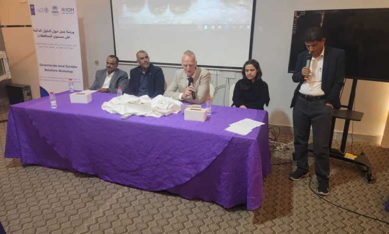 أقيم اليوم في العاصمة عدن، أعمال الورشة الثالثة والأخيرة للحلول المستدامة على مستوى المحافظة، ضمن المشروع المشترك بين الحكومة اليمنية ومنظمات الأمم المتحدة، والممول من صندوق حلول النزوح الداخلي، لتعزيز التنمية المحلية المستدامة ومعالجة قضايا النزوح.