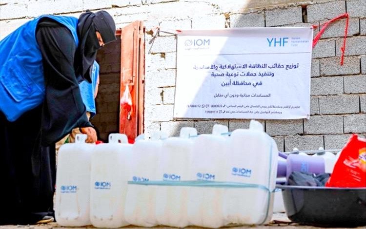 المنظمة الدولية للهجرة تعلن توزيع مستلزمات نظافة لـ3 آلاف أسرة في أبين