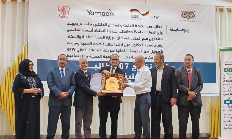 وأقيم الحفل برعاية معالي وزير الصحة العامة والسكان، د. قاسم بحيبح، ووزير الدولة محافظ العاصمة عدن، الأستاذ أحمد حامد لملس، وبالتعاون مع قطاع السكان بوزارة الصحة العامة والسكان، وبتمويل من الحكومة الألمانية عبر بنك التنمية الألماني وبدعم من مؤسسة يمان للتنمية الصحية والاجتماعية.