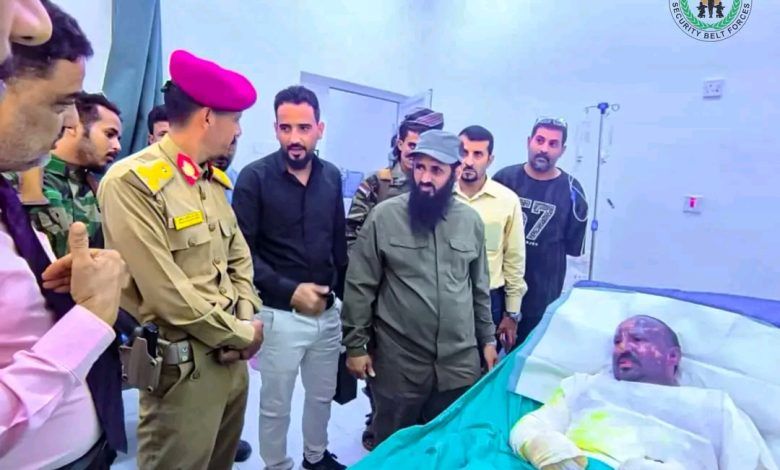 العميدان الوالي واليافعي يزوران جرحى هجوم المحفد الإرهابي في مستشفى عبود العسكري في العاصمة عدن