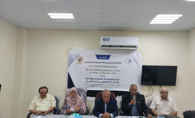 نقابة الصحفيين الجنوبيين ومجلس نقابة عدن تستحضران التجربة الوطنية من ذكرى الاستقلال الجنوبي 30 نوفمبر