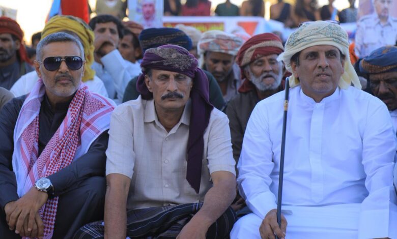 شيوخ ووجهاء مديرية حات ومناطق بلحاف ينضمون إلى ساحة الاعتصام الشعبي المفتوح بمدينة الغيضة