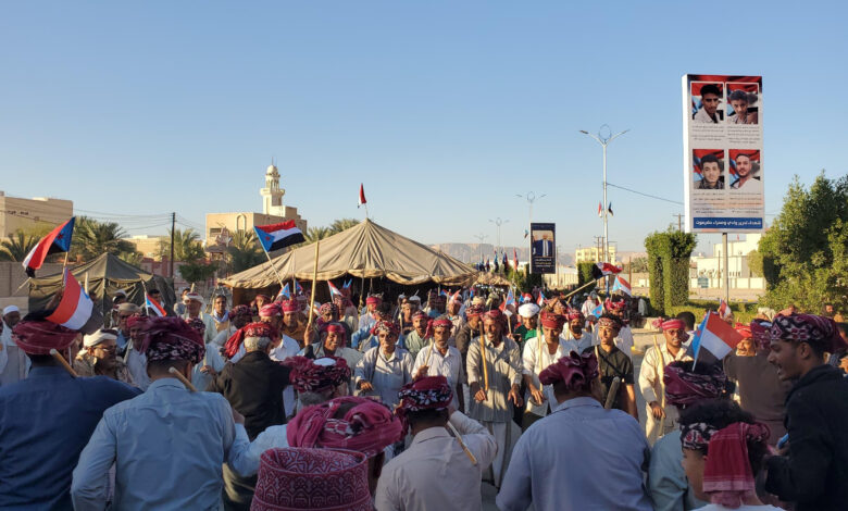 توافد شعبي وقبلي إلى مخيم الاعتصام بسيئون دعمًا لمطلب إعلان دولة الجنوب العربي