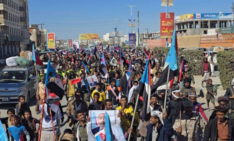 مسيرة جماهيرية حاشدة في عتق تأكيدًا على التمسك بمطلب إعلان الدولة الجنوبية