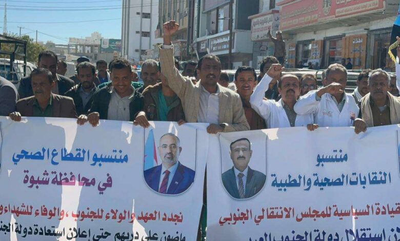 النقابات الطبية والصحية بشبوة تعلن انضامها لمخيم الاعتصام المفتوح في عتق
