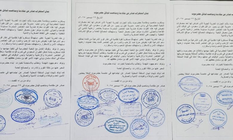 صادر عن مقادمة ومناصب قبائل حضرموت في 29 ديسمبر 2025
