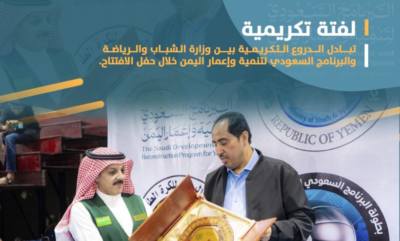 ويقدم البرنامج السعودي لتنمية وإعمار اليمن مشاريع ومبادرات رياضية وشبابية شملت إعادة تأهيل المنشآت الرياضية، وإنشاء الملاعب ورعاية البطولات، وتقديم الدعم الفني ونقل الخبرات في مجال الرياضة، سعيًا إلى تعزيز قدرات الشباب في اليمن.