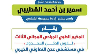 برعاية الشيخ سمير القطيبي.. مستشفى عدن التعاوني الخيري يعلن انطلاق المخيم الطبي الجراحي المجاني الثالث